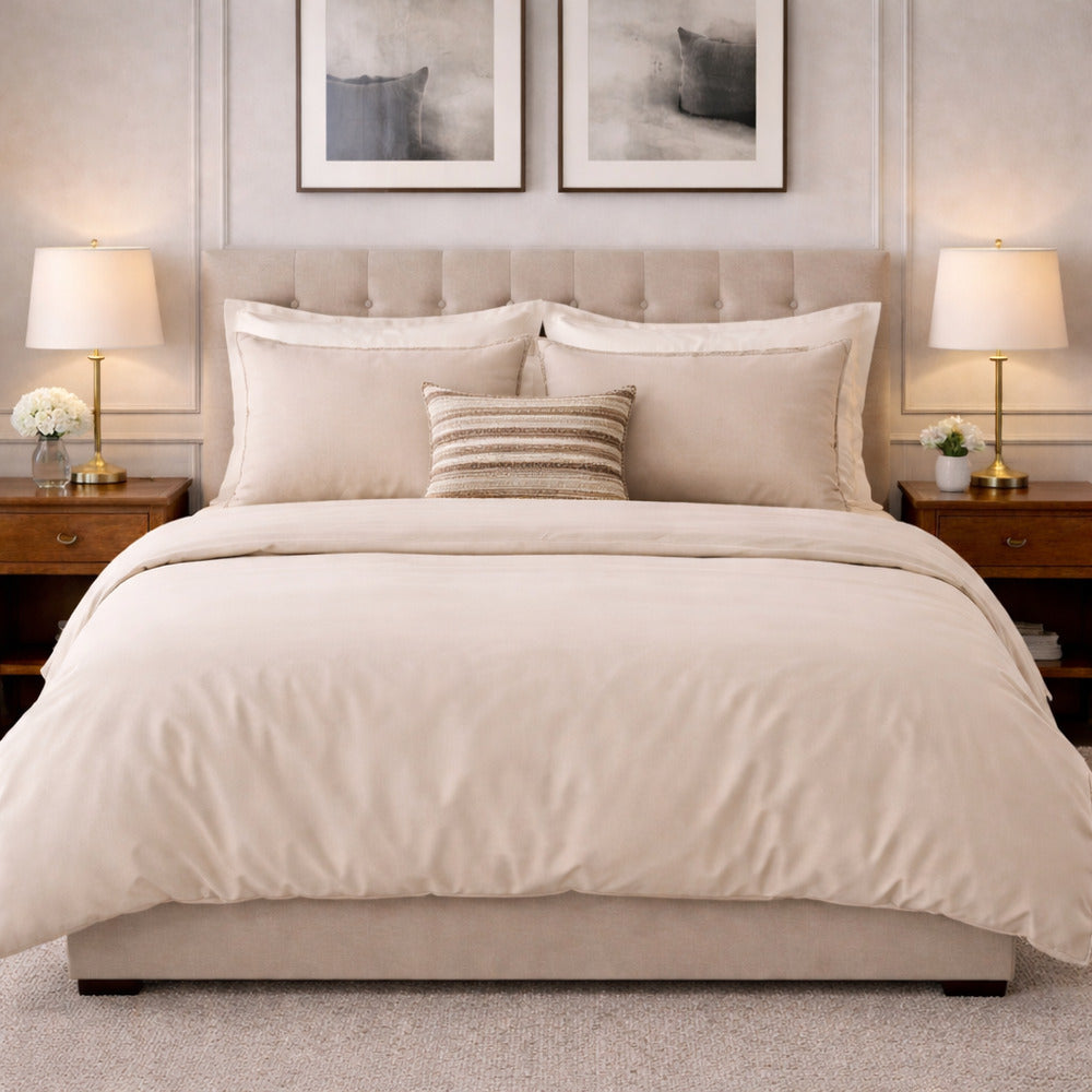 El duvet cover es la funda que lo protege y lo cubre, permitiéndote cambiar el diseño de tu cama fácilmente, mantener el duvet limpio y prolongar su vida útil.