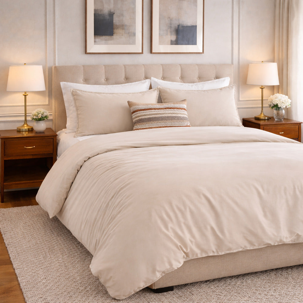 Transforma tu descanso en una experiencia de hotel con nuestro duvet cover, diseñado para quienes buscan suavidad superior, frescura permanente y confort saludable.