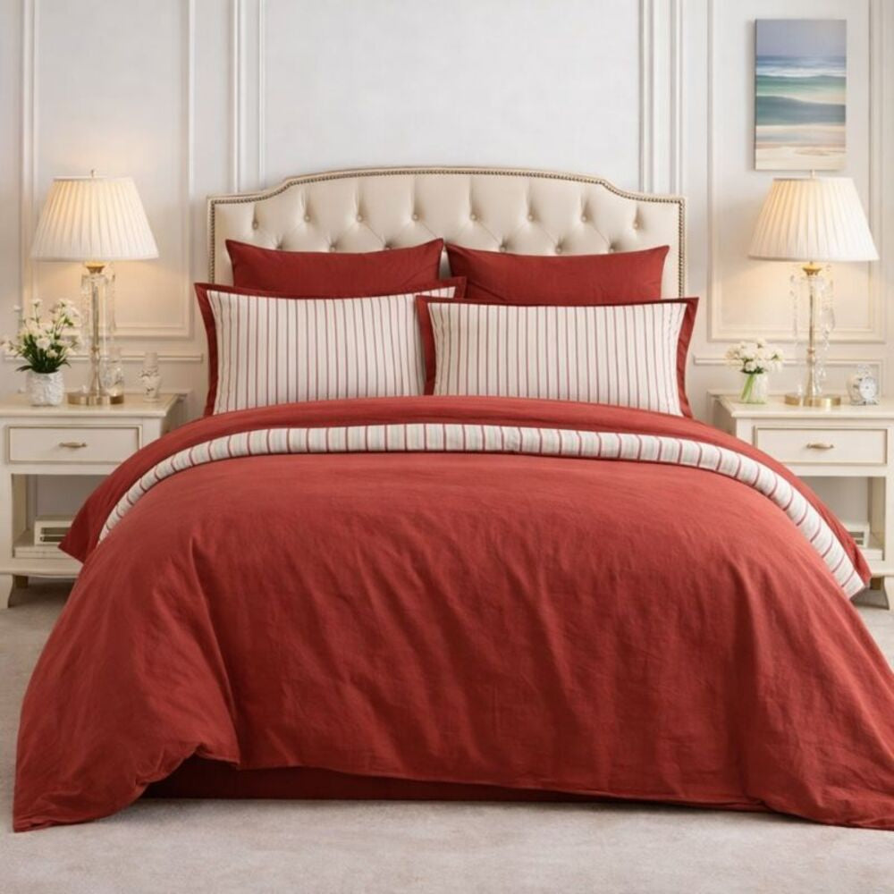 Duvet Cover Reversible 100% Algodón Red Stripes